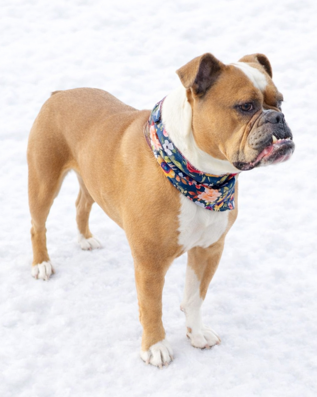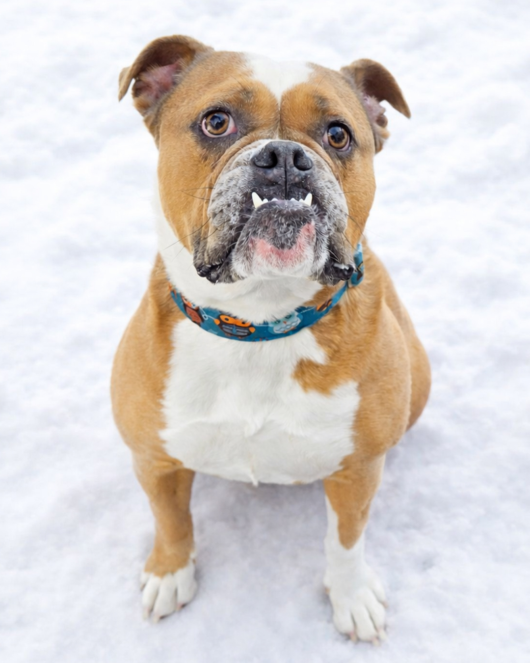 With her sweet caramel coat, and undeniable bulldog edginess, Carmela is definitely mob material to the max (uh, look at those googly eyes! Who are they looking at?!)! She is super feminine but also has BDE (big dog energy) and has a sliver of a quintessential Jersey Italian mom, knowing food as love and never afraid to give honest, unsolicited (bulldog) feedback. And with her natural bobtail and EPIC underbite, how can anyone not fall in love?