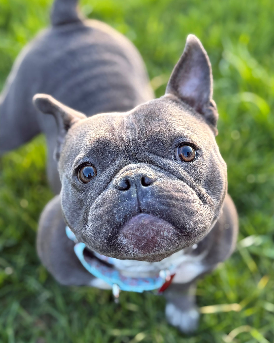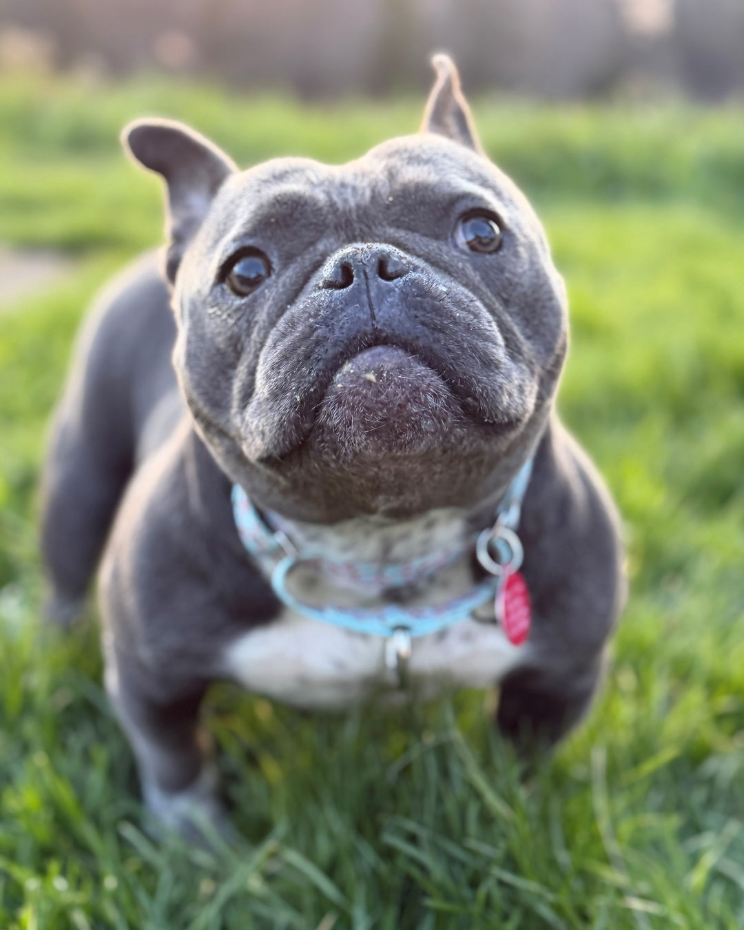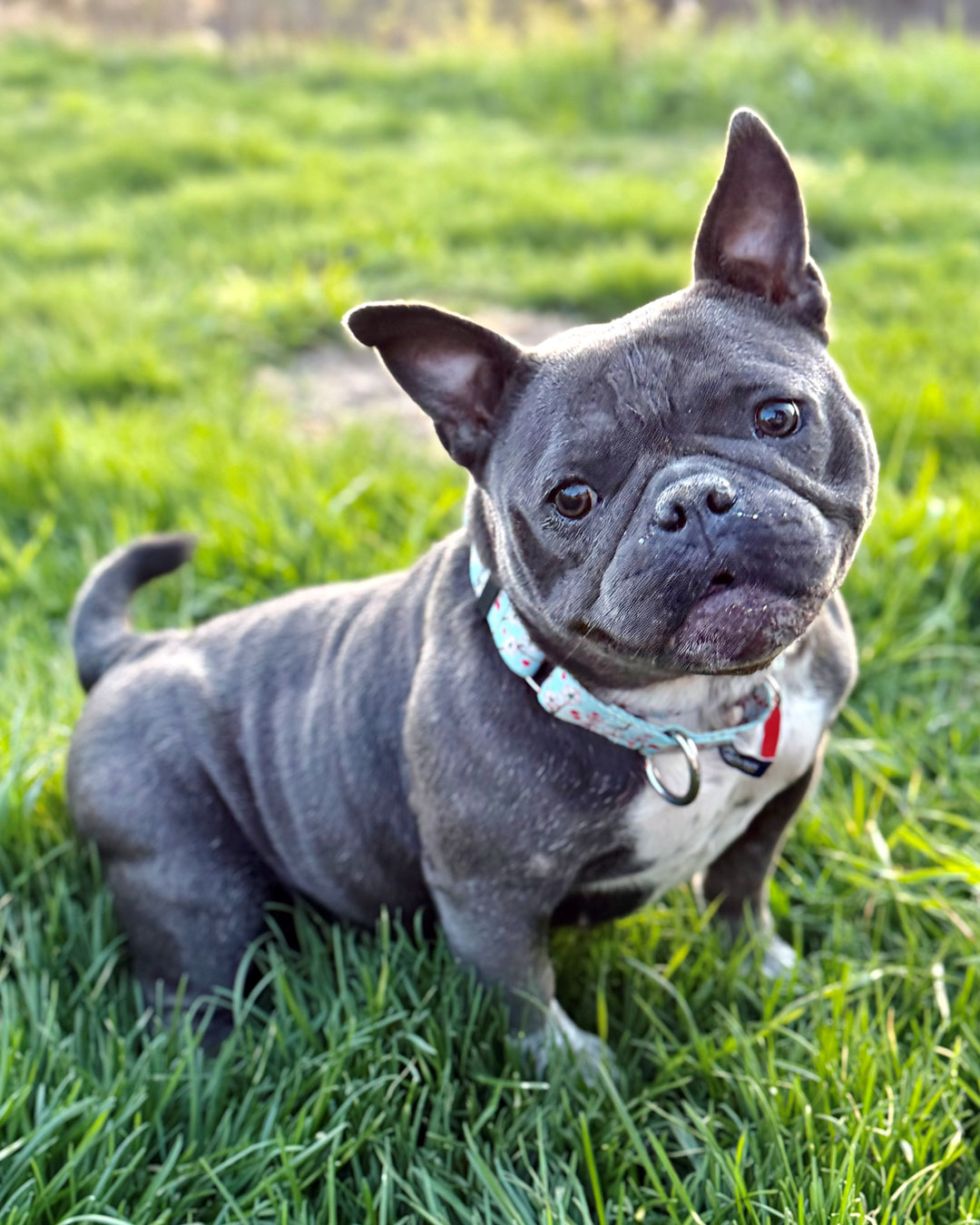 There nothing artificial about this low-ridin’ Frenchie + American Bully mix…she is famously sweet and the itty-bitty size of an individual sugar packet!