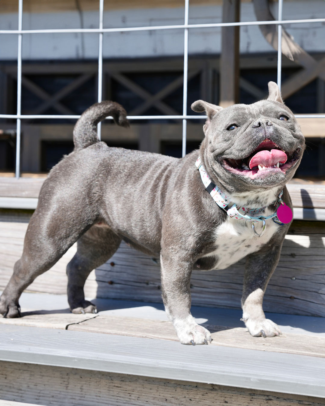 Meet Sweet’N Low! This low-ridin’ 4-year old Frenchie + American Bully mix came to us from local animal control after being found as a stray and she is famously sweet! There is actually nothing artificial about this sweet thing! She makes the BEST gremlin noises and is animated and communicative at every turn.